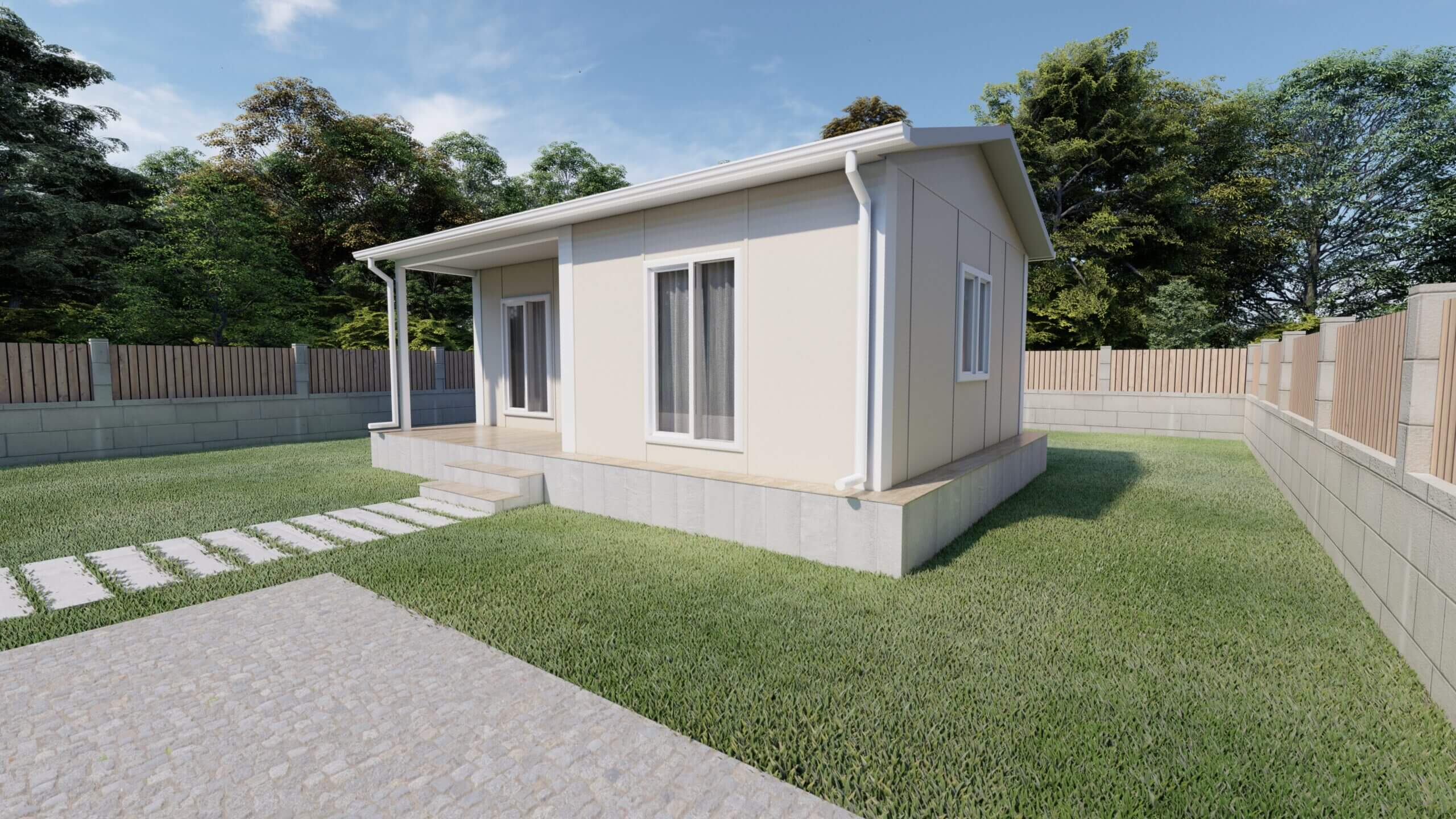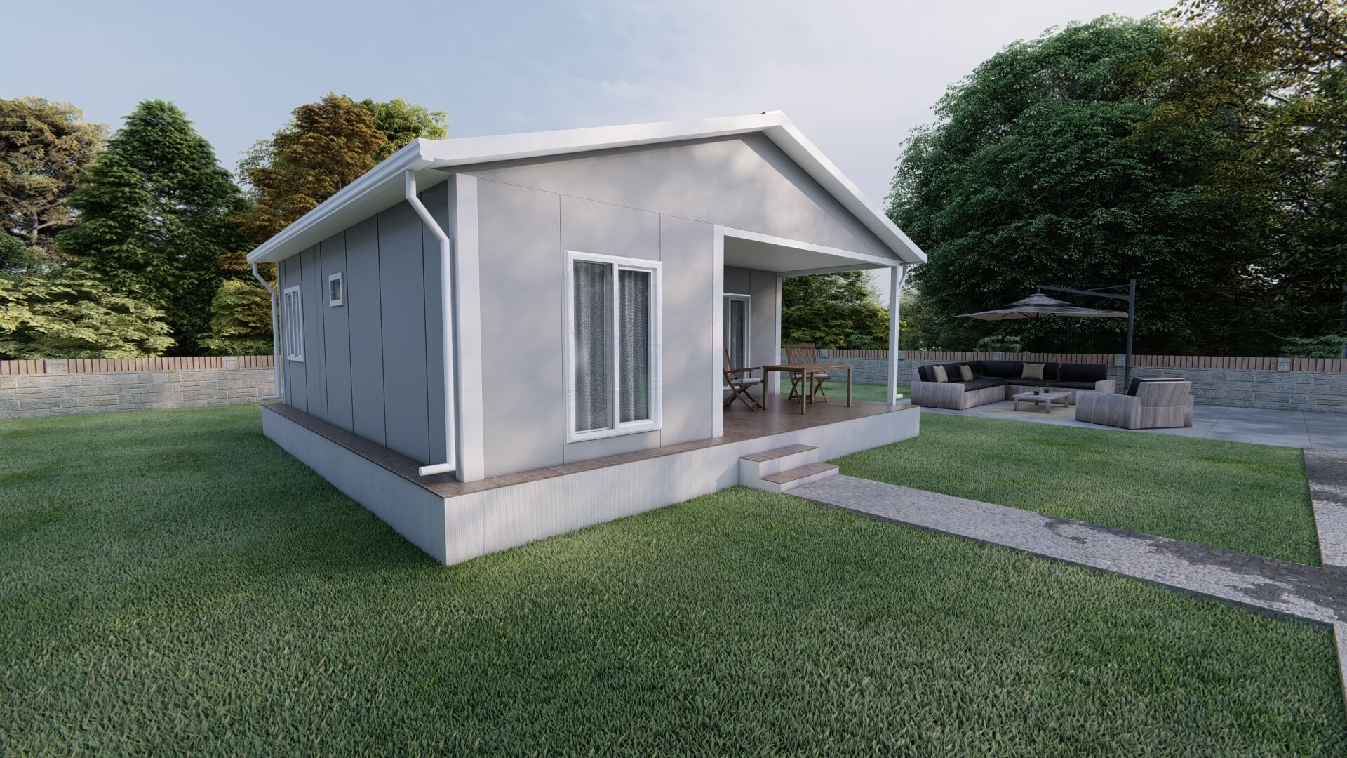 Her ne kadar küçük olsa da 37 m2 prefabrik ev modern ve estetik detaylarla öne çıkar. Açık plan mutfak, geniş pencereler ve veranda sayesinde ferah bir yaşam alanı sunar.