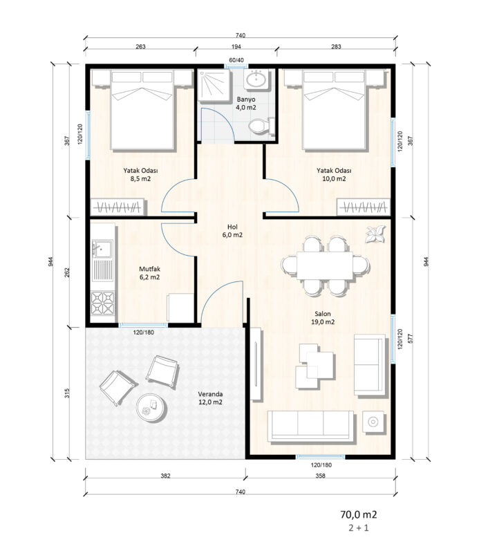 70 m2 Prefabrik Ev – Geniş ve Modern Yaşam Alanı